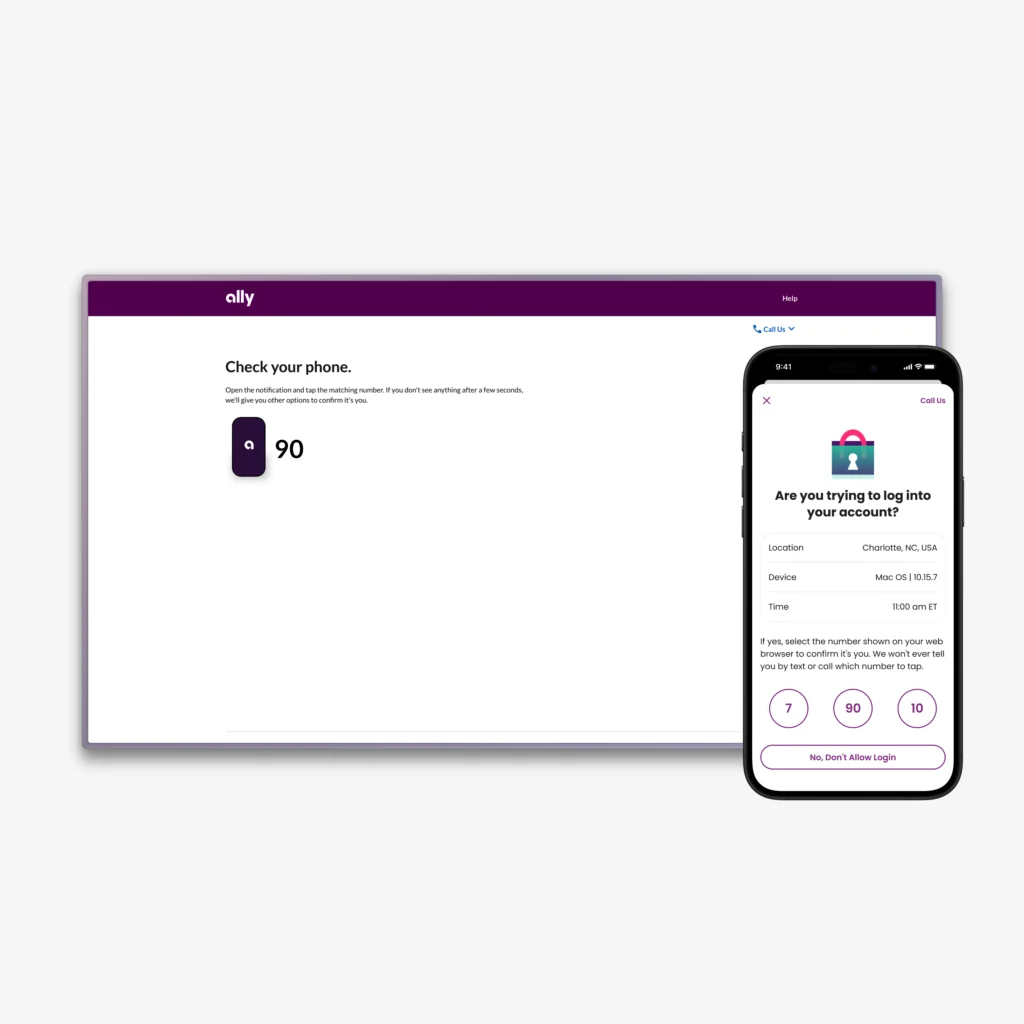 Redesigned Ally’s push-based 2FA flow, enhancing the mobile approval and code selection experience for faster, more intuitive verification.