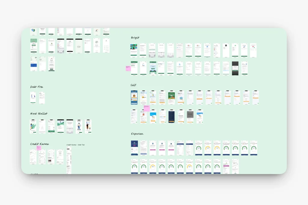 We reviewed experiences from Self, Brigit, Experian, and NerdWallet. Most emphasized credit visibility and account aggregation but lacked interactive payoff modeling or structured strategy education.